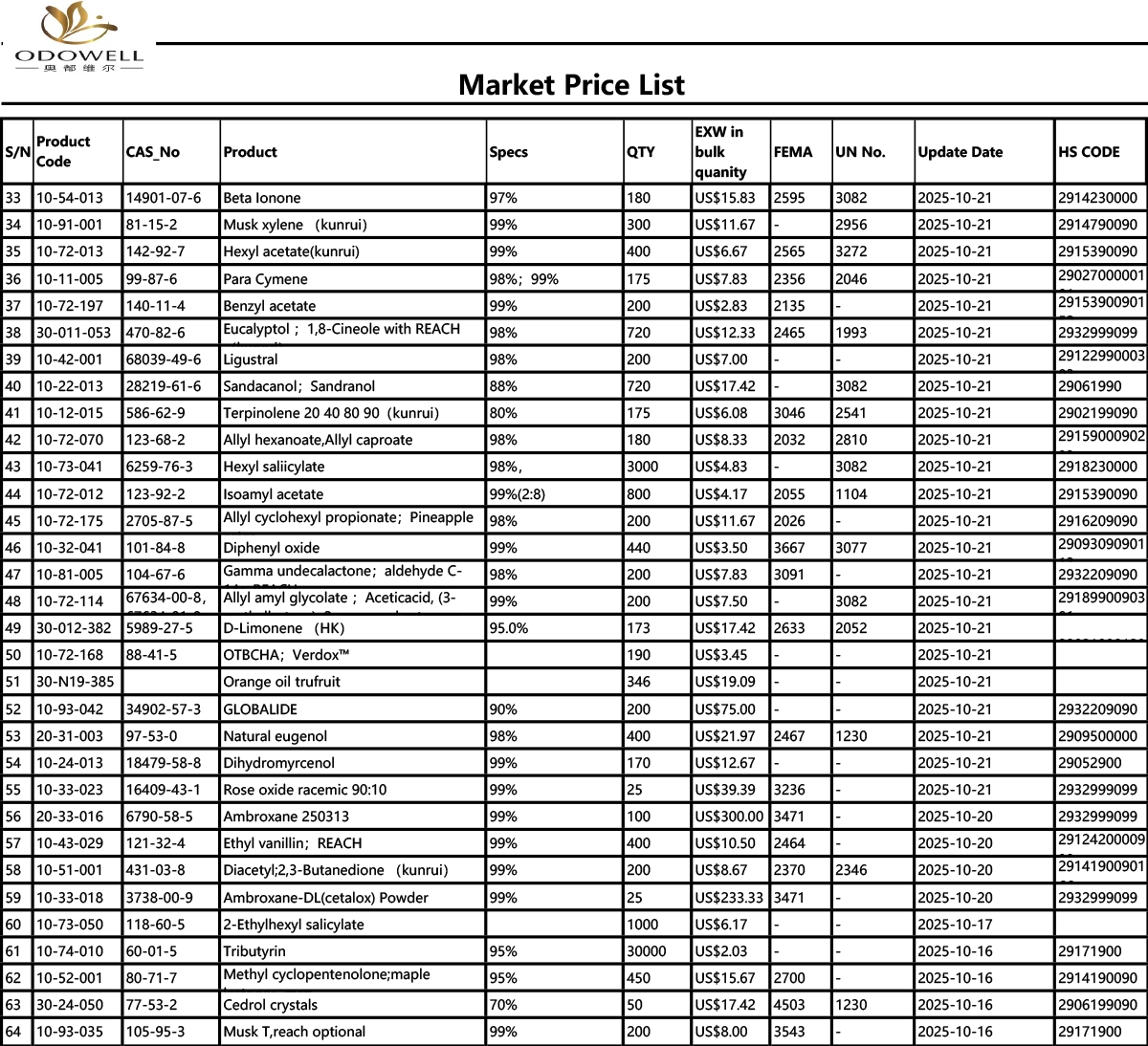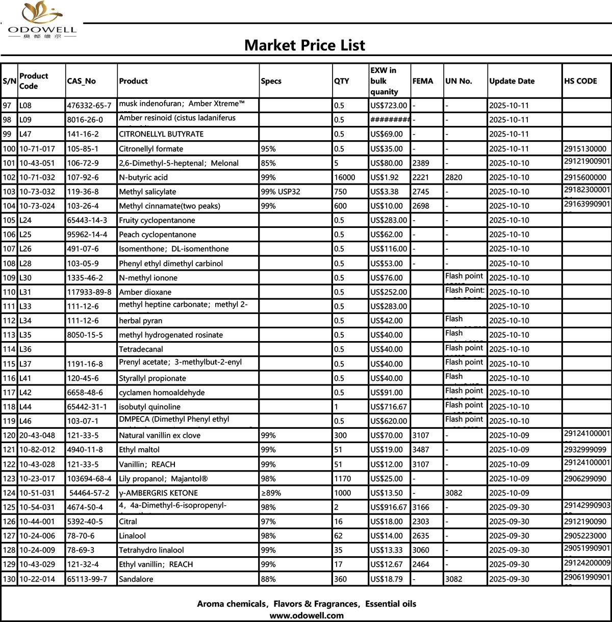 Odowell-Marktpreisliste – 30.09.2025 – 24.10.2025